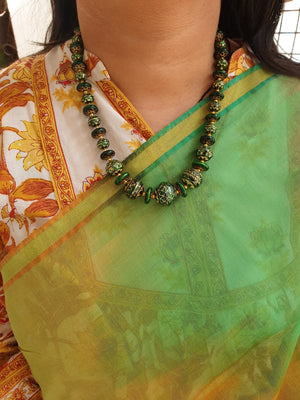 Styling: These are the perfect accessories to accentuate the elegance of your traditional outfit, furthermore, adding a perfect pop of color and edginess. The beautiful elements of the necklace go well with the saree or any Western dress. A statement necklace is enough to make the entire outfit look amazing. It looks better with a solid color outfit or pastel outfit.