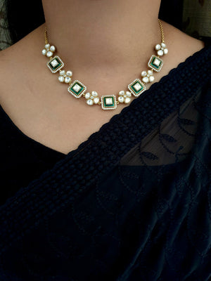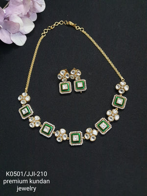Elevate your style with this exquisite Designer Kundan polki Necklace set. Its intricate craftsmanship and regal charm make it the perfect statement piece