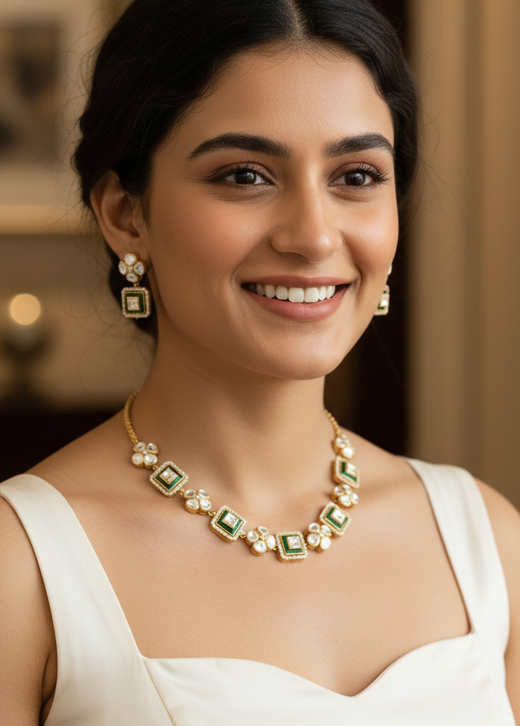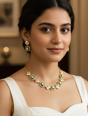 Green Meenakari Kundan Polki Necklace