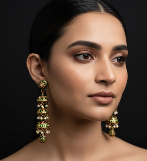 An elegant floral meenakari earrings with the most stunning festoon. The perfect accessory for your occasion. This earrings is handcrafted with love