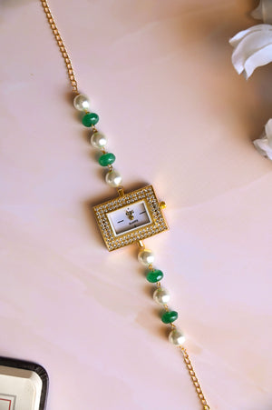 Material: 22k Gold Plated Silver Alloy, Jadau Beads, Quartz Watch