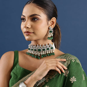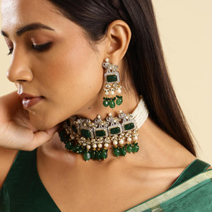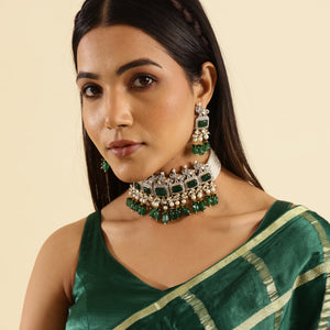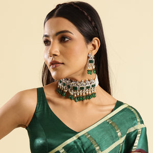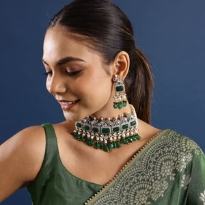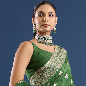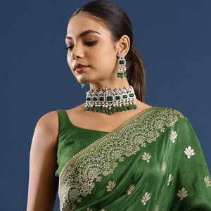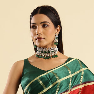 An elegant green pearl stone necklace & earrings with the most stunning festoon. The perfect accessory for your occasion. This necklace set is handcrafted with love