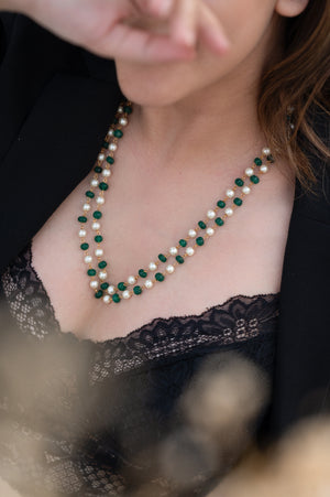 An elegant green pumpkin pearl beaded necklace with the most stunning festoon. The perfect accessory for your occasion. This necklace is handcrafted with love