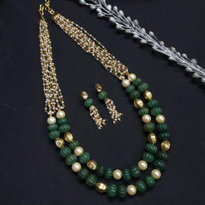 Green Pumpkin Pearl Beaded Necklace With Earrings