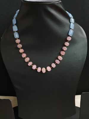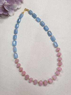 Pink Pumpkin Blue Stone Beaded Necklace