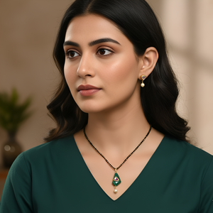 An elegant adorable green stone mangalsutra the most stunning festoon. The perfect accessory for your occasion. This mangalsutra is handcrafted with love