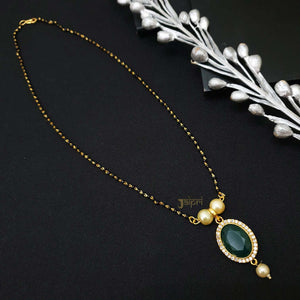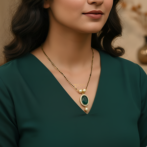 An elegant green stone mangalsutra is the most stunning festoon. The perfect accessory for your occasion. This mangalsutra is handcrafted with love