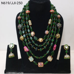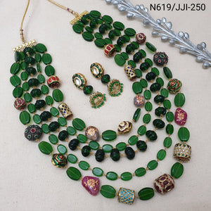 Elevate your style with this exquisite stone beaded necklace set. Its intricate craftsmanship and regal charm make it the perfect statement piece