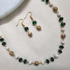 An elegant green stone beaded necklace with the most stunning festoon. The perfect accessory for your occasion. This necklace is handcrafted with love