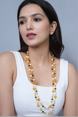 Yellow Stone Double Layered Beads Pearl Long Mala