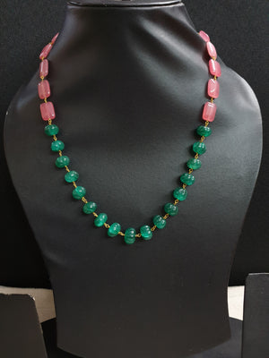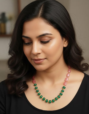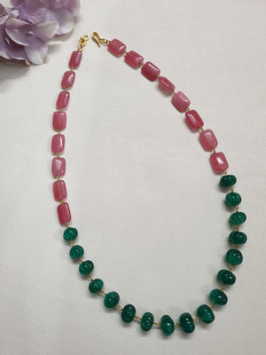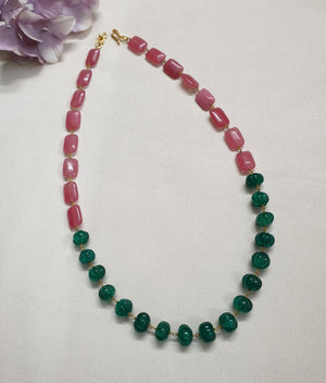 Green Pumpkin Pink Stone Beaded Necklace