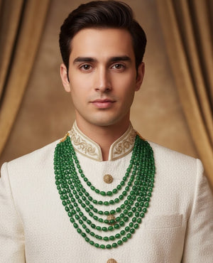 Styling: These are the perfect accessories to accentuate the elegance of your traditional outfit, furthermore, adding a perfect pop of color and edginess. The beautiful elements of the necklace go well with the sherwani or narrow jacket. A statement groom necklace is enough to turn the entire outfit look amazing. It looks better with a solid color outfit or pastel outfit.