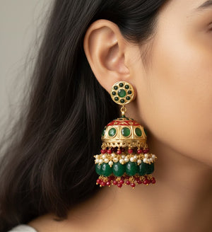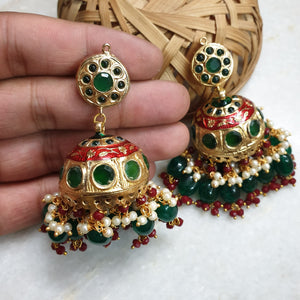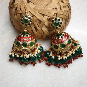 Green Stone Jadau Jhumki Stone Beaded Earrings