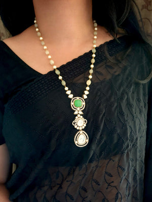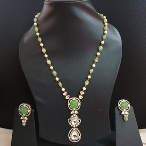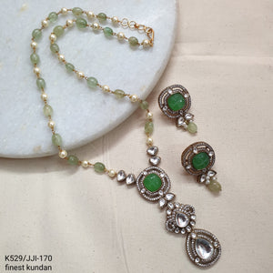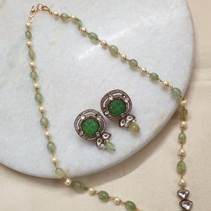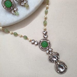 Green Stone Kundan Delicate Pendant Set With Earrings