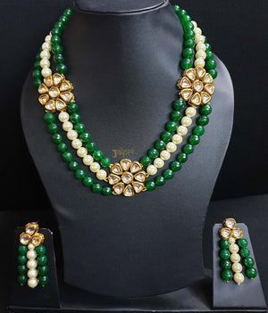 Green Stone Kundan Necklace With Earrings