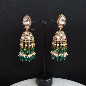 Green Stone Kundan Polki Jhumki Earrings
