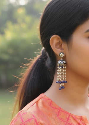 Dark Blue Meenakari Pearl Jhumki Earrings