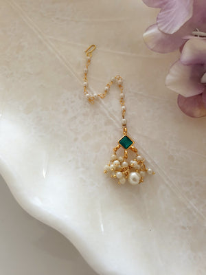 Green Stone Meenakari Pearl Beaded Maang Tikka