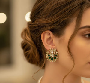 An elegant green stone kundan earrings with the most stunning festoon. The perfect accessory for your occasion. This earrings are handcrafted with love