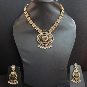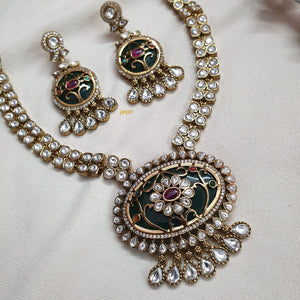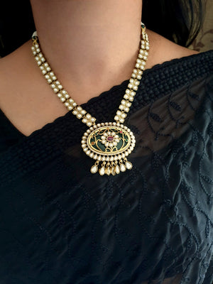Green Stone Moissanite Kundan Pendant Necklace Set