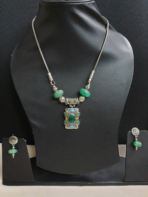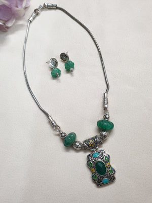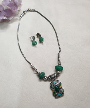 An elegant green stone necklace with the most stunning festoon. The perfect accessory for your occasion. This necklace is handcrafted with love
