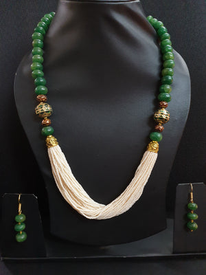 Green Stone Pearl Seed Bead Necklace Set