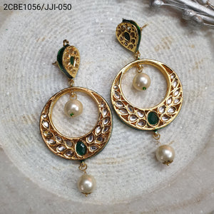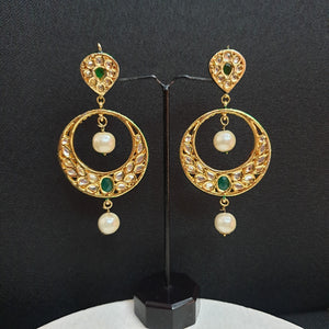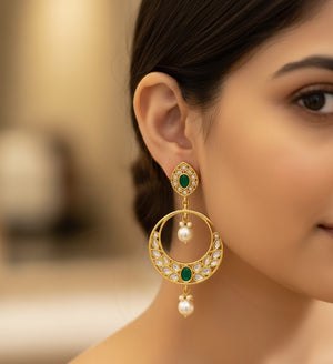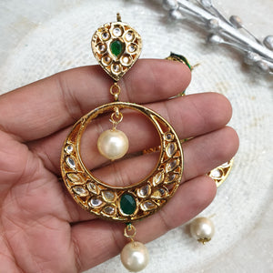 Green Stone Round Kundan Chandbali Earrings