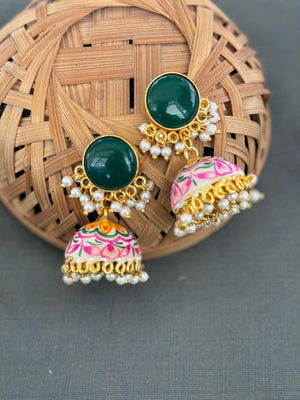 Elegant handpainted jhumki earrings with the most stunning festoon. The perfect accessory for your occasion. These earrings are handcrafted with love
