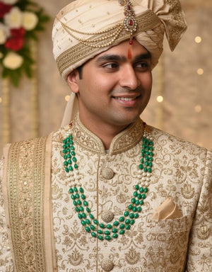 Styling: These are the perfect accessories to accentuate the elegance of your traditional outfit, furthermore, adding a perfect pop of color and edginess. The beautiful elements of the necklace go well with the sherwani or narrow jacket. A statement groom necklace is enough to turn the entire outfit look amazing. It looks better with a solid color outfit or pastel outfit.