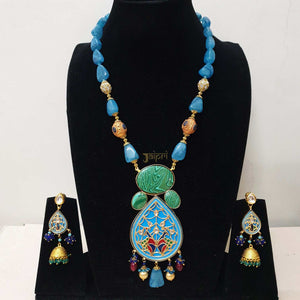 Green & Turquoise Beads Stone, Meenakari Fusion Pendant With Earrings