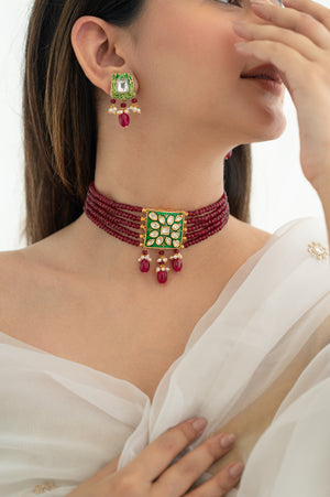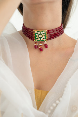 *Design: Premium square green enamel Kundan pendant with intricate stone setting.