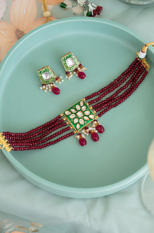 This necklace isn’t just jewelry – it’s a timeless piece that elevates your style and tells a story of heritage. The combination of red, green, and gold gives it a royal Mughal-inspired appeal, perfect for brides, bridesmaids, and ethnic wear lovers.