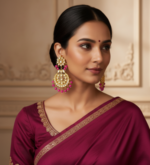 Styling: These are the perfect accessories to accentuate the elegance of your traditional outfit, furthermore, adding a perfect pop of color and edginess. The beautiful elements of the earrings go well with the saree or any Western dress. A statement earring is enough to make the entire outfit look amazing. It looks better with a solid color outfit or pastel outfit.