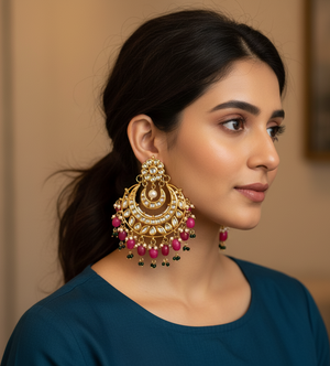 Styling: These are the perfect accessories to accentuate the elegance of your traditional outfit, furthermore, adding a perfect pop of color and edginess. The beautiful elements of the earrings go well with the saree or any Western dress. A statement earring is enough to make the entire outfit look amazing. It looks better with a solid color outfit or pastel outfit.