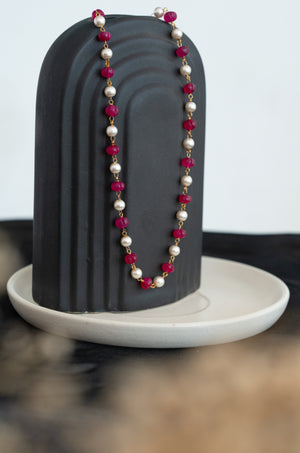 Hot Pink Pumpkin Pearl Beaded Necklace