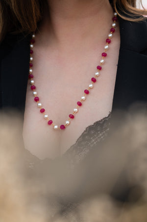 An elegant hot pink pumpkin pearl beaded necklace with the most stunning festoon. The perfect accessory for your occasion. This necklace is handcrafted with love