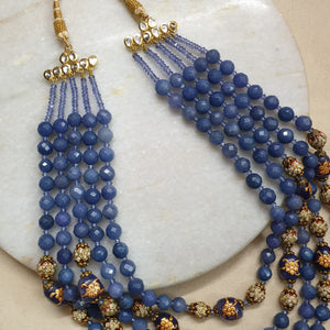 Ice Blue Stone Necklace Set With Handpainted Meenakari Beads