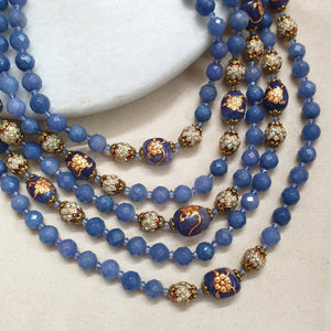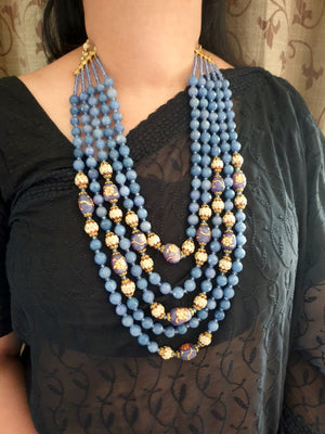 Elevate your style with this exquisite ice blue beaded necklace set. Its intricate craftsmanship and regal charm make it the perfect statement piece