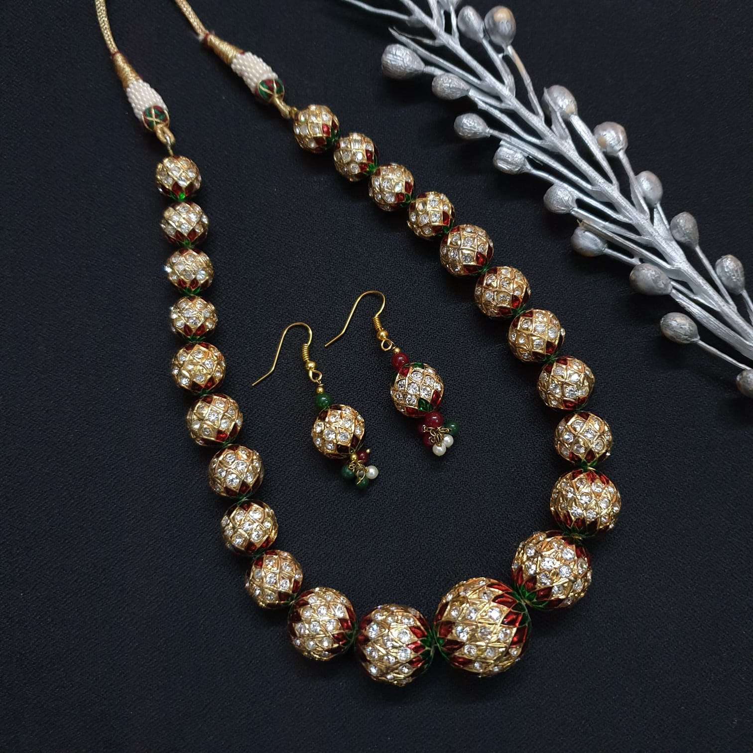 Jadau Beads Traditional Necklace With Earrings