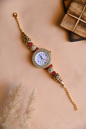 Material: 22k Gold Plated Silver Alloy, Jadau Beads, Quartz Watch