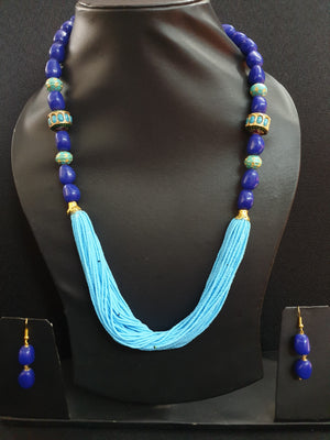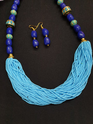 Jadau Blue Seed Bead Necklace Set