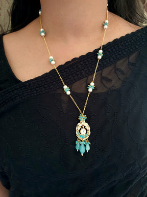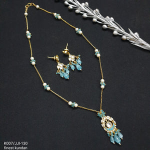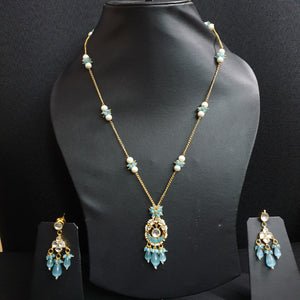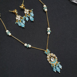 Jadau Kundan Blue Beads Small Pendant Set With Earrings