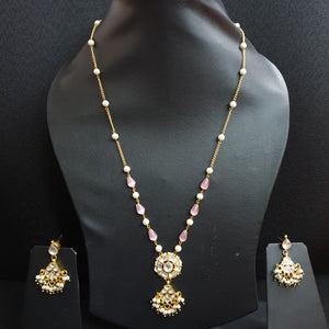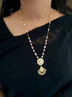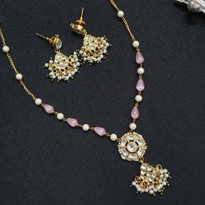 Jadau Kundan Pink Stone Small Pendant Set With Earrings