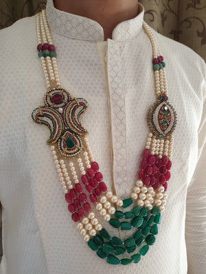 Styling: These are the perfect accessories to accentuate the elegance of your traditional outfit, furthermore, adding a perfect pop of color and edginess. The beautiful elements of the necklace go well with the sherwani or narrow jacket. A statement groom necklace is enough to turn the entire outfit look amazing. It looks better with a solid color outfit or pastel outfit.