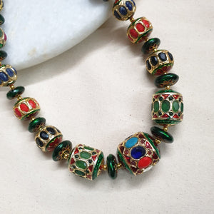 An elegant designer Jadau bead necklace with the most stunning festoon. The perfect accessory for your occasion. This necklace is handcrafted with love