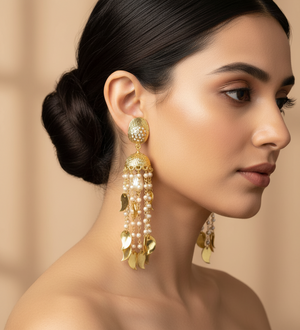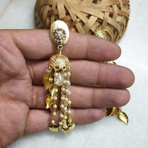 An elegant multi-stone Kundan Jadau earring with the most stunning festoon. The perfect accessory for your occasion. This earrings are handcrafted with love