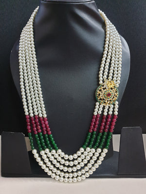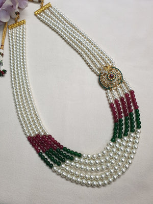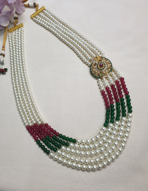 Elevate your style with this exquisite stone-beaded necklace set. Its intricate craftsmanship and regal charm make it the perfect statement piece