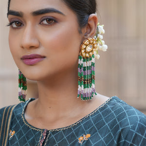 Styling: These are the perfect accessories to accentuate the elegance of your traditional outfit, furthermore, adding a perfect pop of color and edginess. The beautiful elements of the earrings go well with the saree or any Western dress. A statement earring is enough to make the entire outfit look amazing. It looks better with a solid color outfit or pastel outfit.
