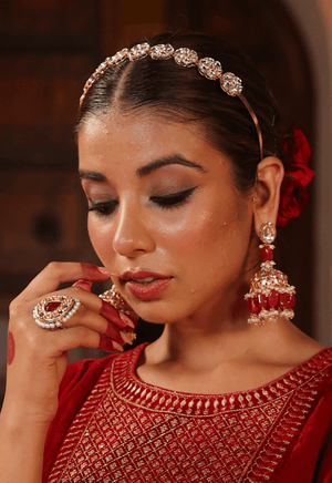 Kundan Big Jhumki With Red Stone Kundan Ring