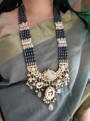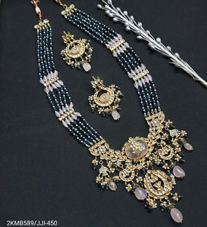 Kundan Blue Pink Stone Beaded Long Pendant Set